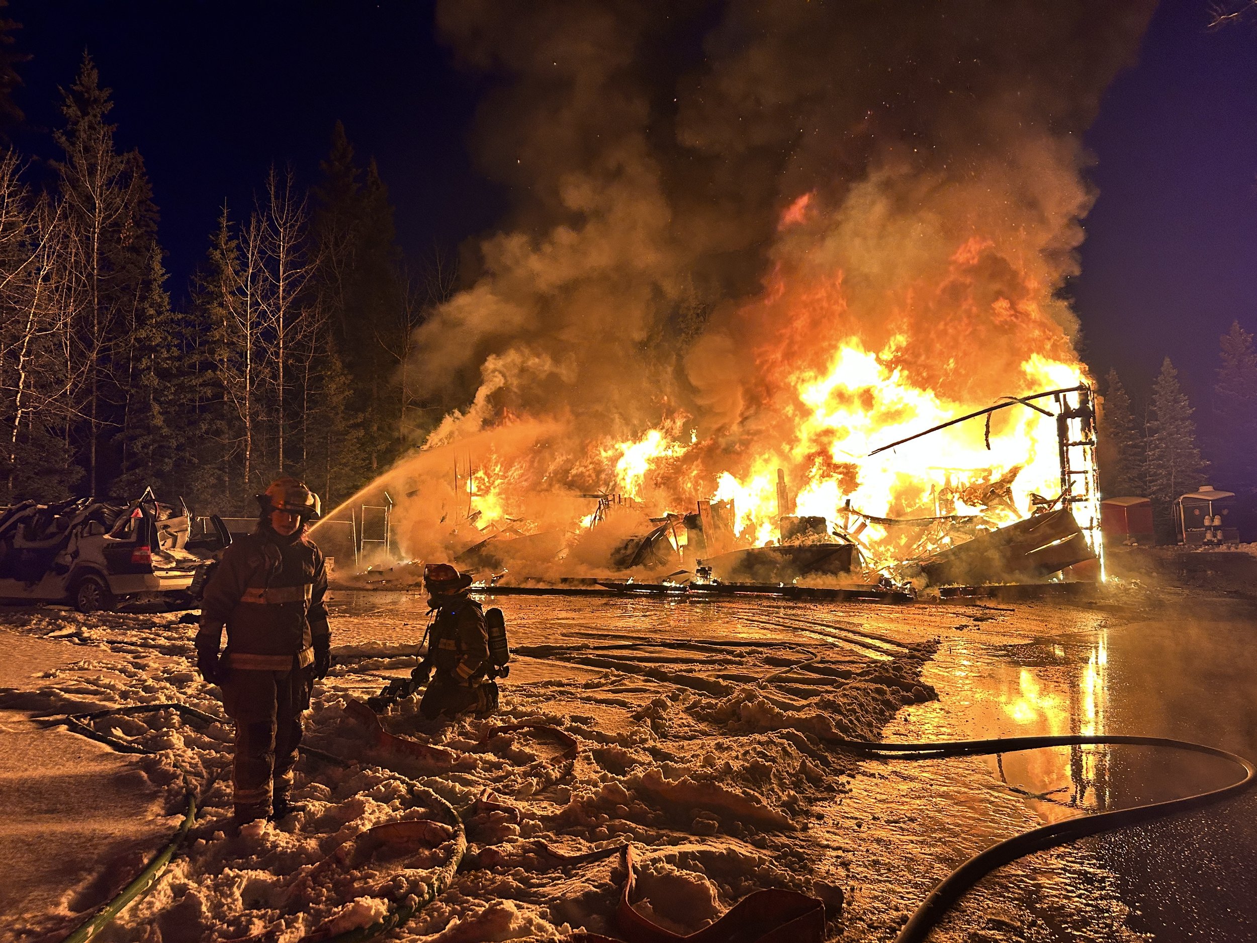 Despite the heroic efforts of more than 30 firefighters from Redwood Meadows Emergency Services and Rocky View County Fire Services, the 4-bay back hall and its contents were destroyed. The building contained equipment used to support emergency responses, including: an older fire engine, a water tender truck, a bush buggy, a Utility Terrain Vehicle (UTV) and SCBA air bottle refilling station. Other early known losses include the emergency equipment on the trucks, additional emergency equipment, extra turnout gear, training equipment, RMES’ Training Centre and grass fire water containment units. An independent fire investigation will take place, and the findings will be shared.
